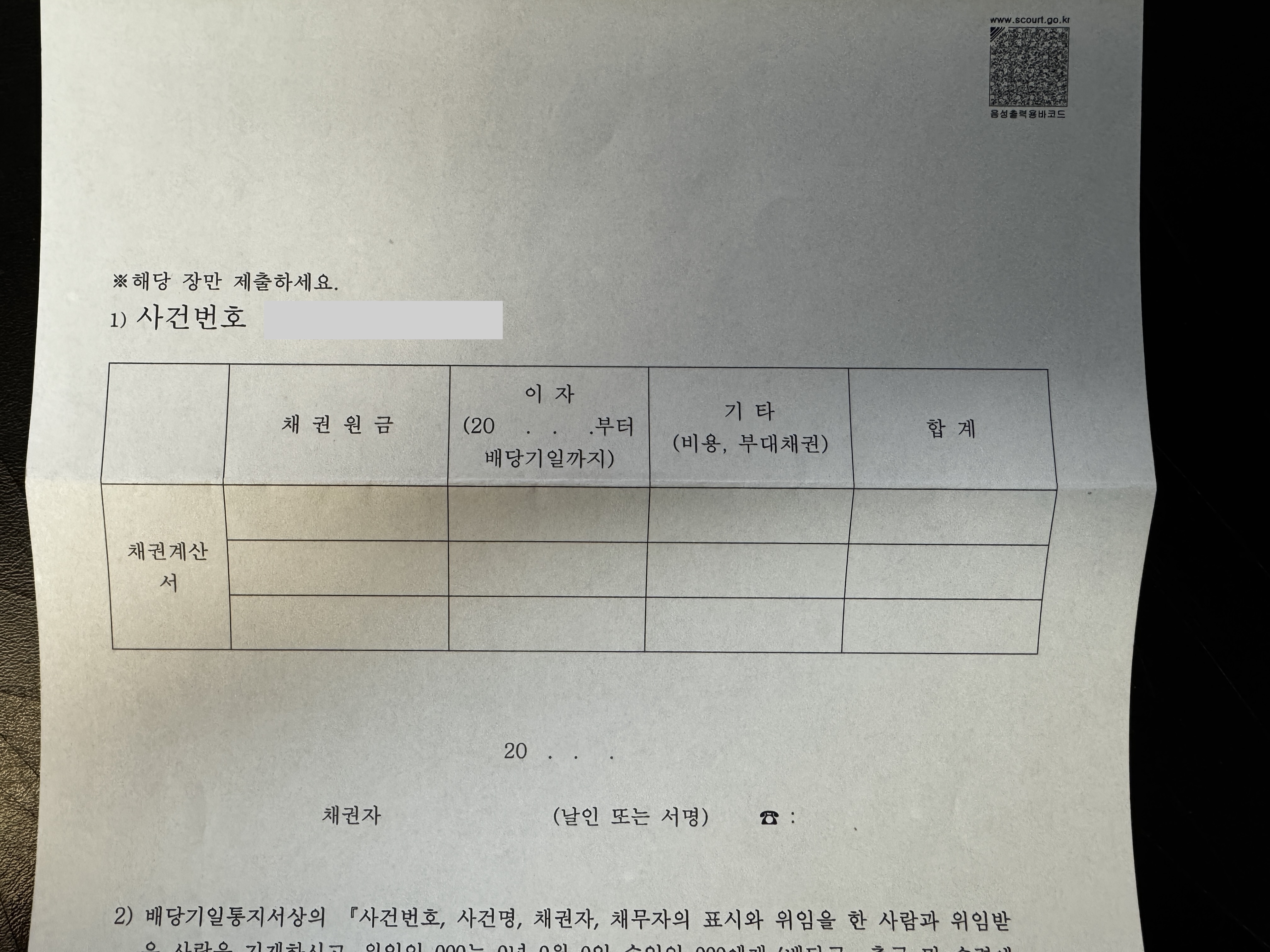 법원에서 보내준 채권계산서 양식