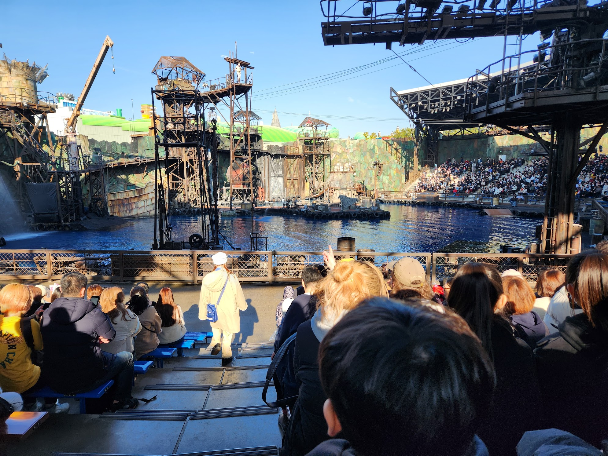 물세상(워터월드)라 물이 여기저기 뿌리는데 겨울이다보니 관객석으로는 잘 안뿌리는 것 같았어요.